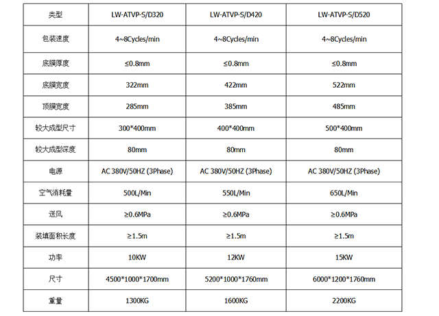 四、全自動真空包裝機設備參數: