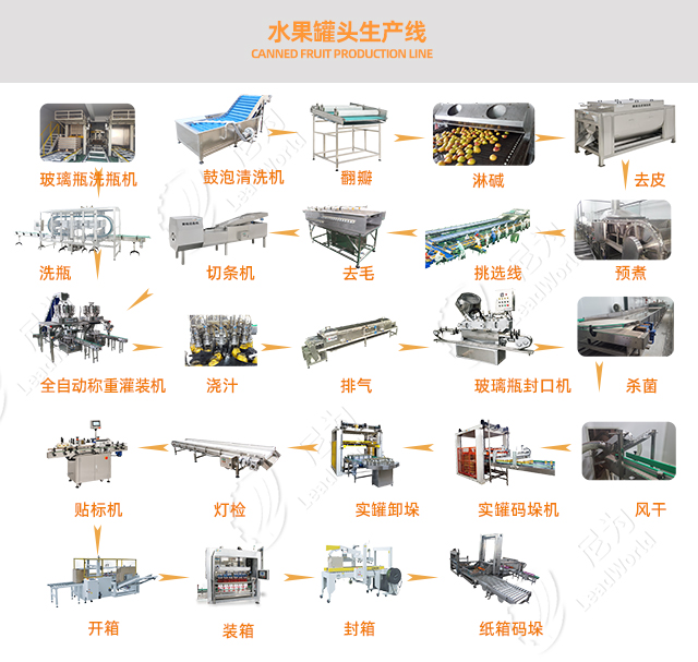 下圖為什錦罐頭(水果罐頭生產(chǎn)線為例)具體可致電尼為機(jī)械!