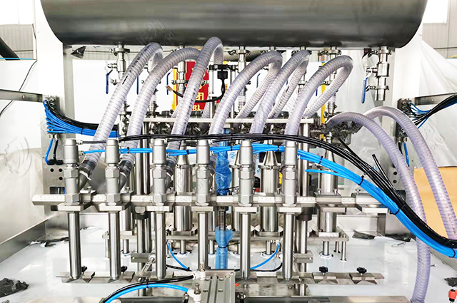 這臺設(shè)備是8頭灌裝機,一般我們的灌裝頭數(shù)量視產(chǎn)量而定,直線式的建議4~12頭,否則灌裝速度反而達(dá)不到預(yù)期。